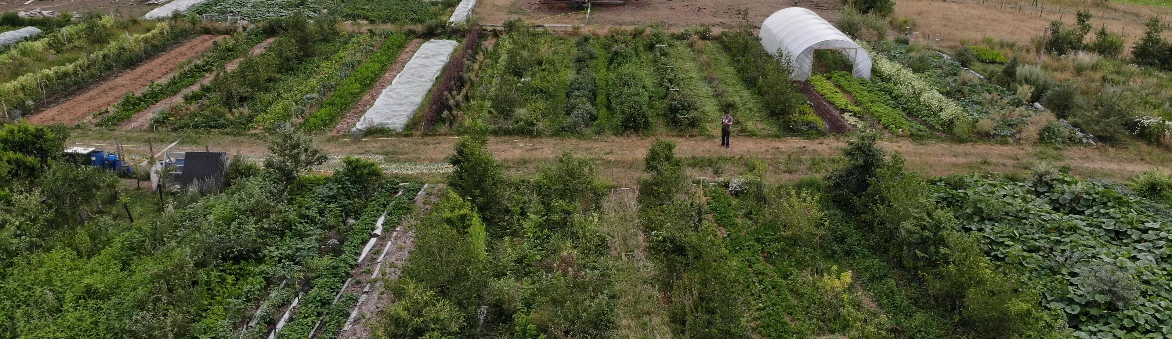 Skovlandbruget er designet efter permakulturprincipper og ligger i trillebør-afstand fra vores hus på Friland. En perfekt afstand til dyrehold, grøntsagsdyrkning, planteskole og alt det andet, som kræver daglig pasning.